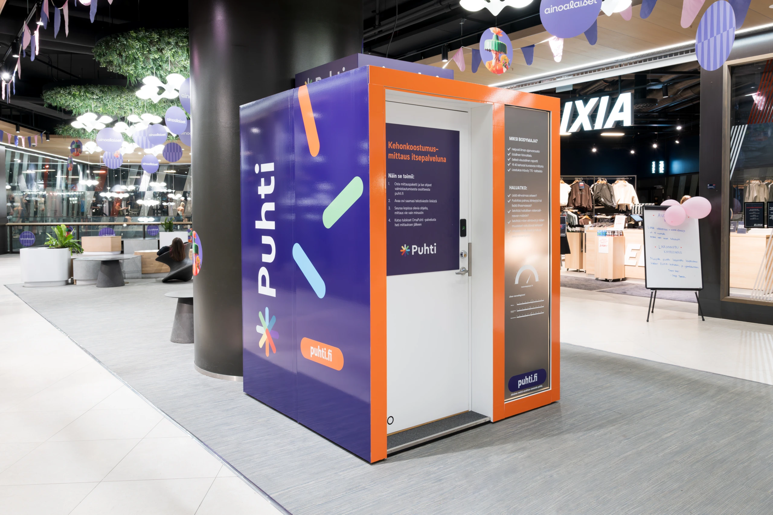 För Puhti‑tester finns Mehiläinens omfattande laboratorienätverk tillgängligt: cirka 75 verksamhetsställen på över 50 orter. Kroppsmätningar kan göras som självservice på 24 mätpunkter i köpcentrum runt om i Finland.