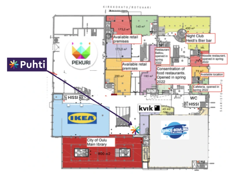 Sijaitsemme Kauppakortteli Pekurin toisessa kerroksesta lähellä Ikean suunnittelustudiota.