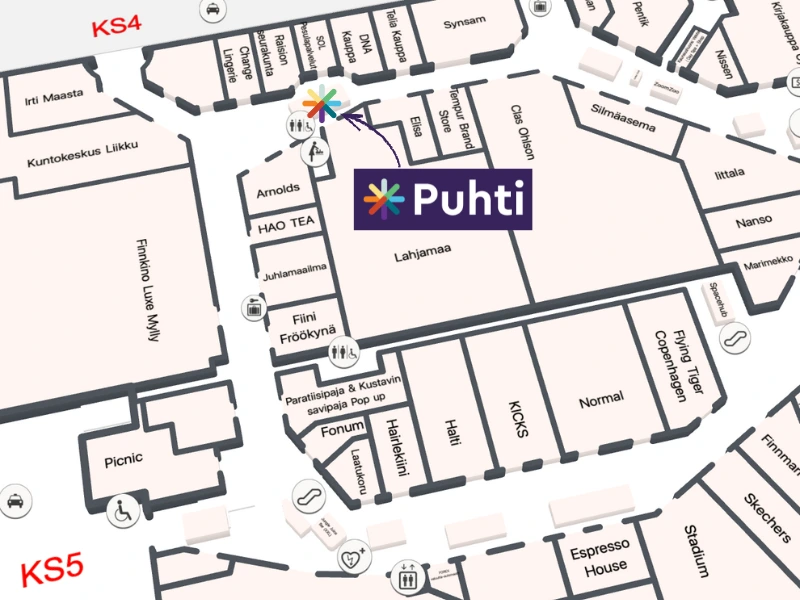 Sijaitsemme Kauppakeskus Myllyn 1.kerroksessa Finnkinon ja Lahjamaan lähellä.