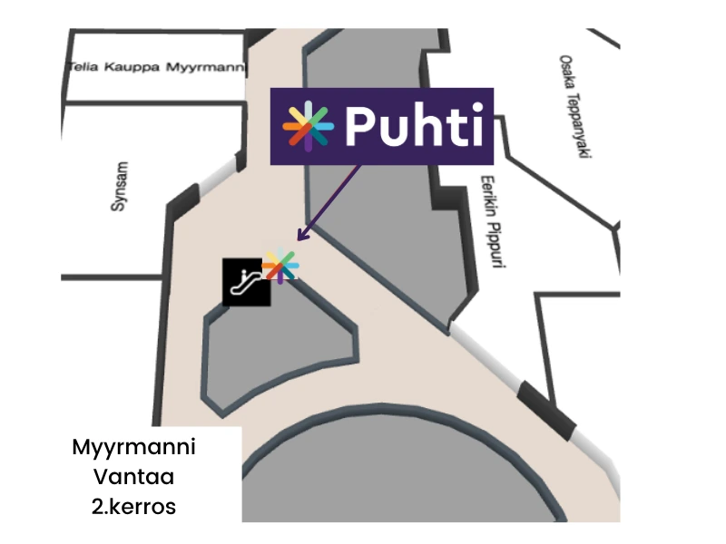 Sijaitsemme Kauppakeskus Myyrmannin toisessa kerroksessa lähellä Synsam-liikettä.