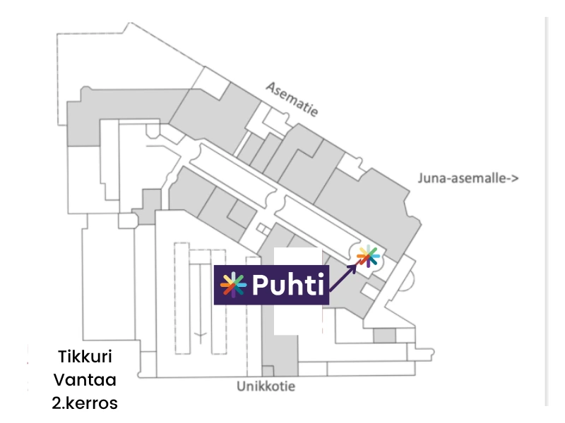 Sijaitsemme Kauppakeskus Tikkurin toisesta kerroksesta läheltä Tempur-liikettä.